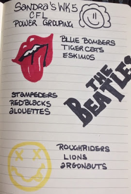 Here we are with Week 4 in the CFL complete. How did your team fair? Before I give you my perspective let me catch you up on how my Power Groupings are different from other rankings. Typically sports people do Power Ranking which numerically ranks teams from 1 to 9 (or more depending how bad they stink). Instead of this traditional ranking I started doing a Grouping instead. There are three groups labelled A, B & C. This means there is no official number 1 team and instead the A group is the best in my opinion for that week. Cool right? The other thing is, I really don't take any of this very seriously and I don't think you should either. I mean, sports is fun right? The drawing is cathartic...especially after another Rider loss... *gag*. So please with all this in mind, don't get upset if what I have doesn't match what you may think a ranking should look like.